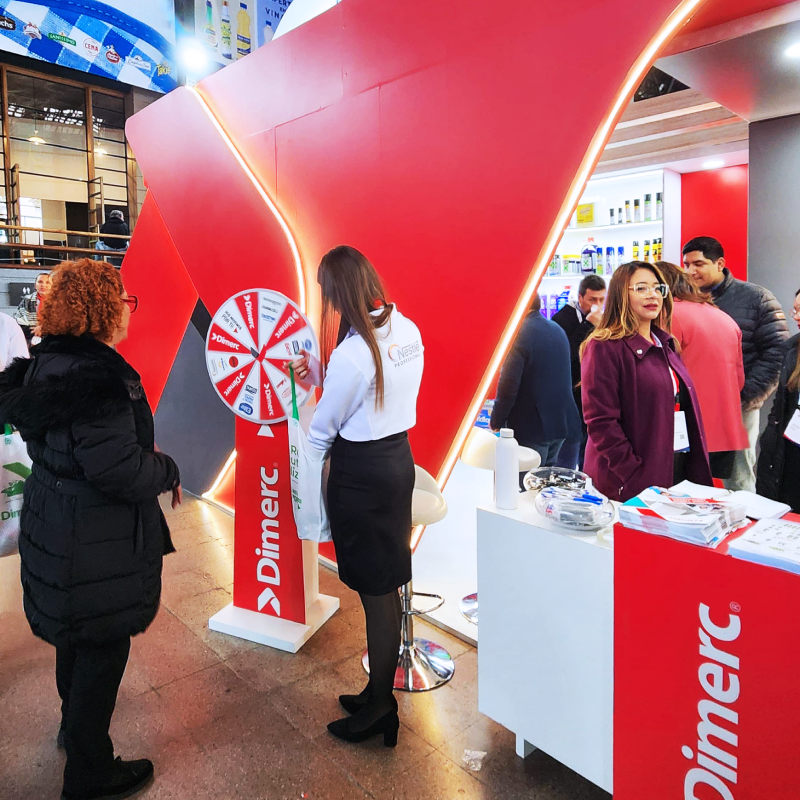 Ruleta Autosoporante de madera, con gráfica adhesiva diseño a elección del cliente.